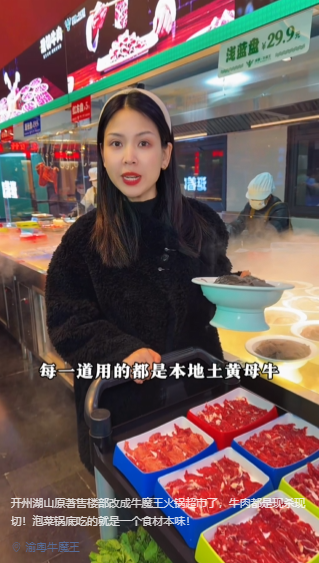 开州湖山原著售楼部改成牛魔王火锅超市了,牛肉都是现杀现切!泡菜锅底吃的就是一个食材本味!