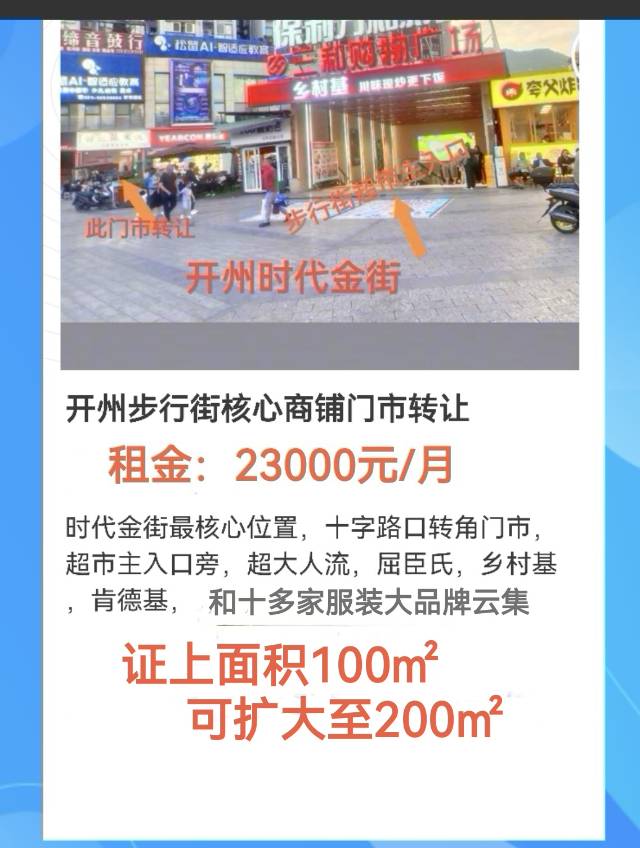 时代金街最核心位置,十字路口转角门市,超市主入口旁,超大人流,屈臣氏,乡村基,肯德基,品牌服装云集,